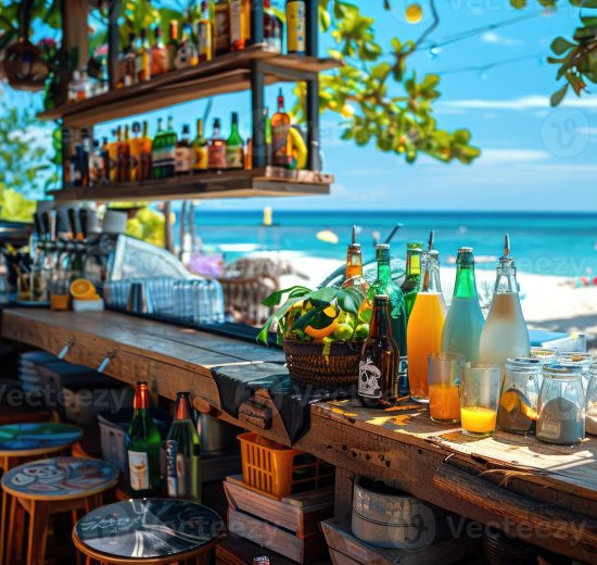 Vibrant Beach Bar Atmosphere Offering Flavorful Bites and Chilled Beverages